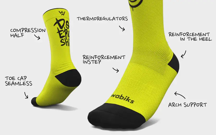 Choose from our wide range of designs to find the one that best suits your personality, or create your own socks by adding whichever colours, logos, patterns, and much more! At Wabiks, our socks are 100% made in Spain using top-quality materials, ensuring durability and a comfortable workout. Train with beautiful, fun, and high-quality sports socks.